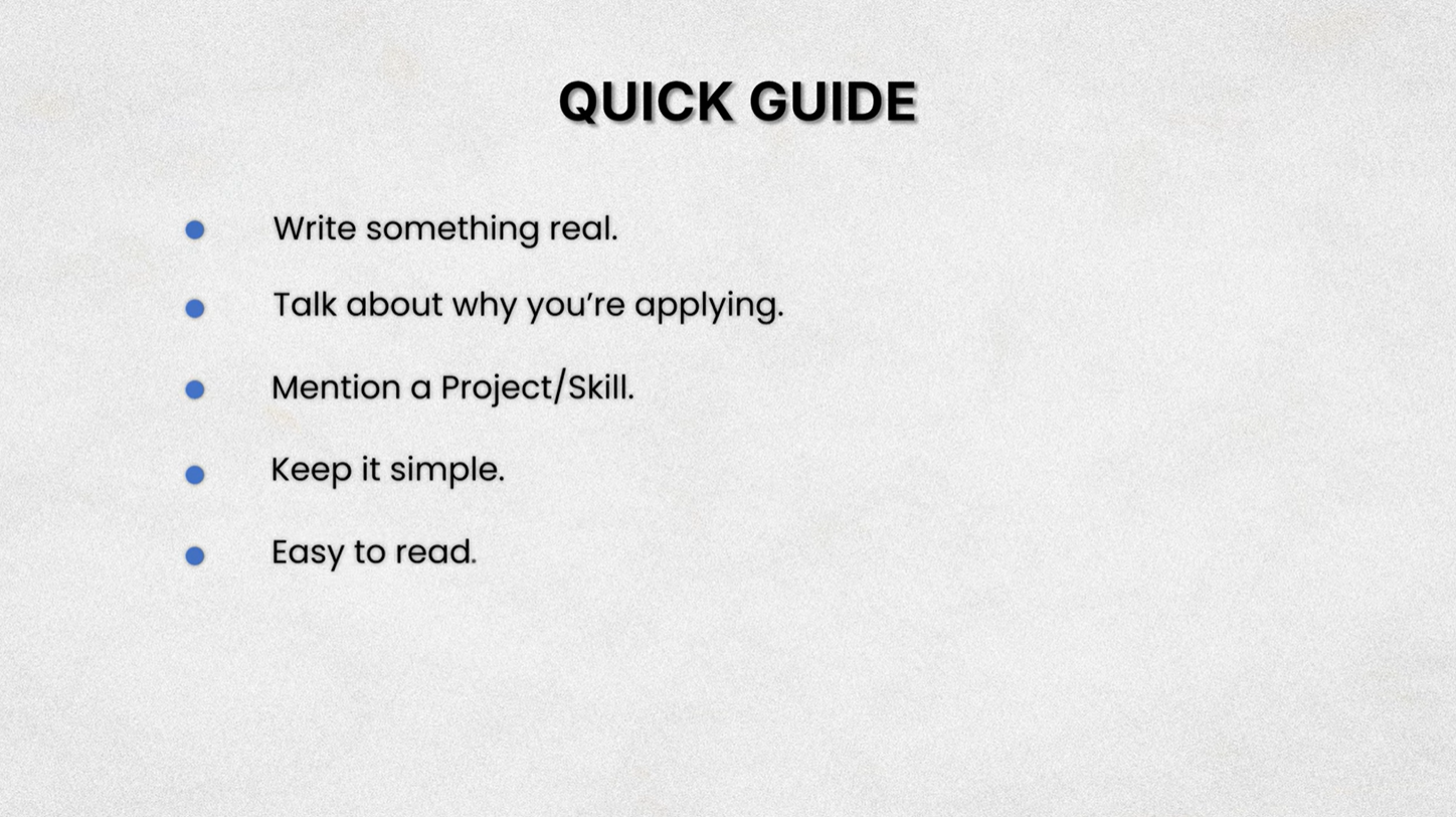 Please don't do it. That stuff doesn’t work anymore. Instead, write something real. Talk about why you’re applying. Mention a project or skill you did that actually fits the role. Keep it simple and easy to read.