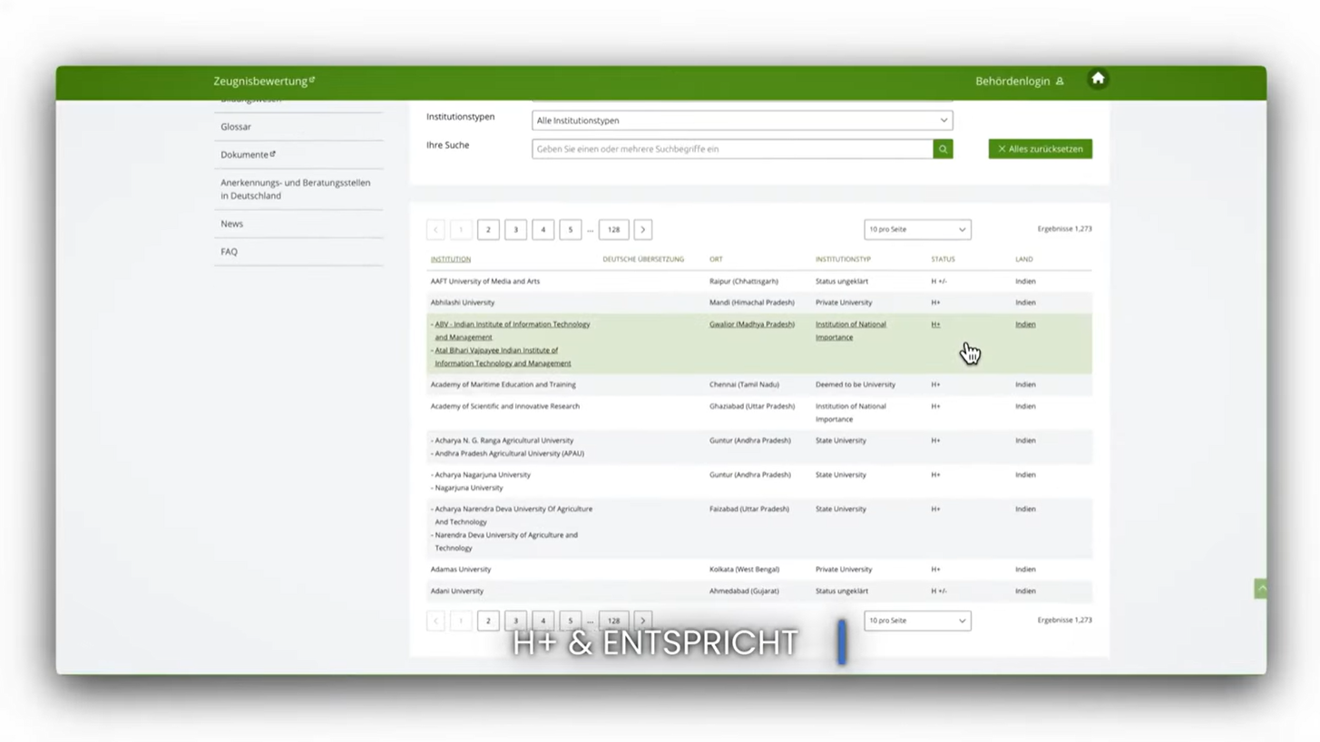 But don’t worry. Germany has a proper system to verify this called Anabin. It’s an official website where you can check if your university and your degree are recognized. In Anabin, if your university shows up as H+ and your degree says "entspricht," you’re good to go.