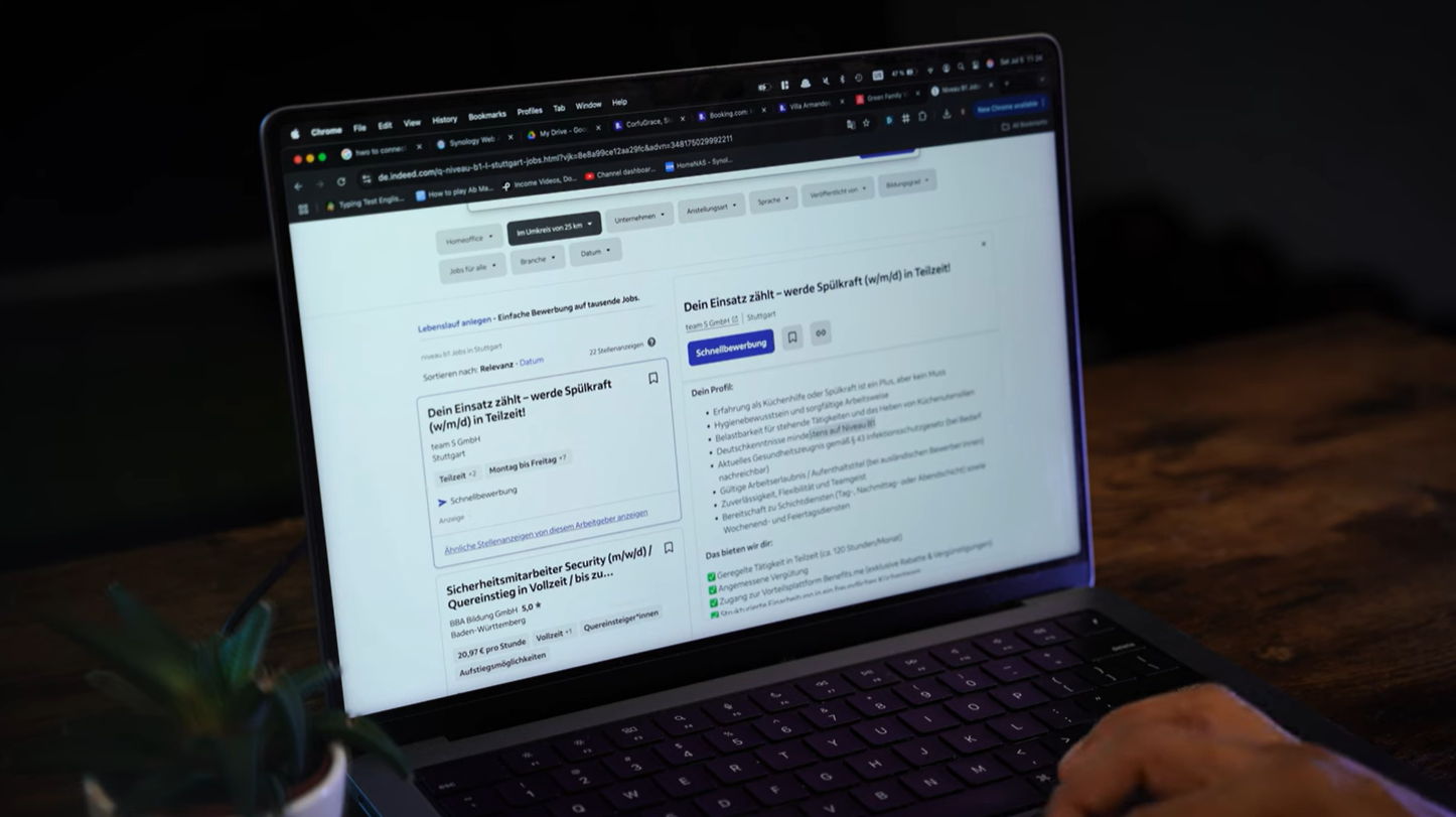 We’ve got one of the most powerful tools for job search—the internet. Whether you’re in your home country or already in Germany, the process is the same. You’re not walking into offices with a printed resume. You’re applying online. And you can do that directly from your home.