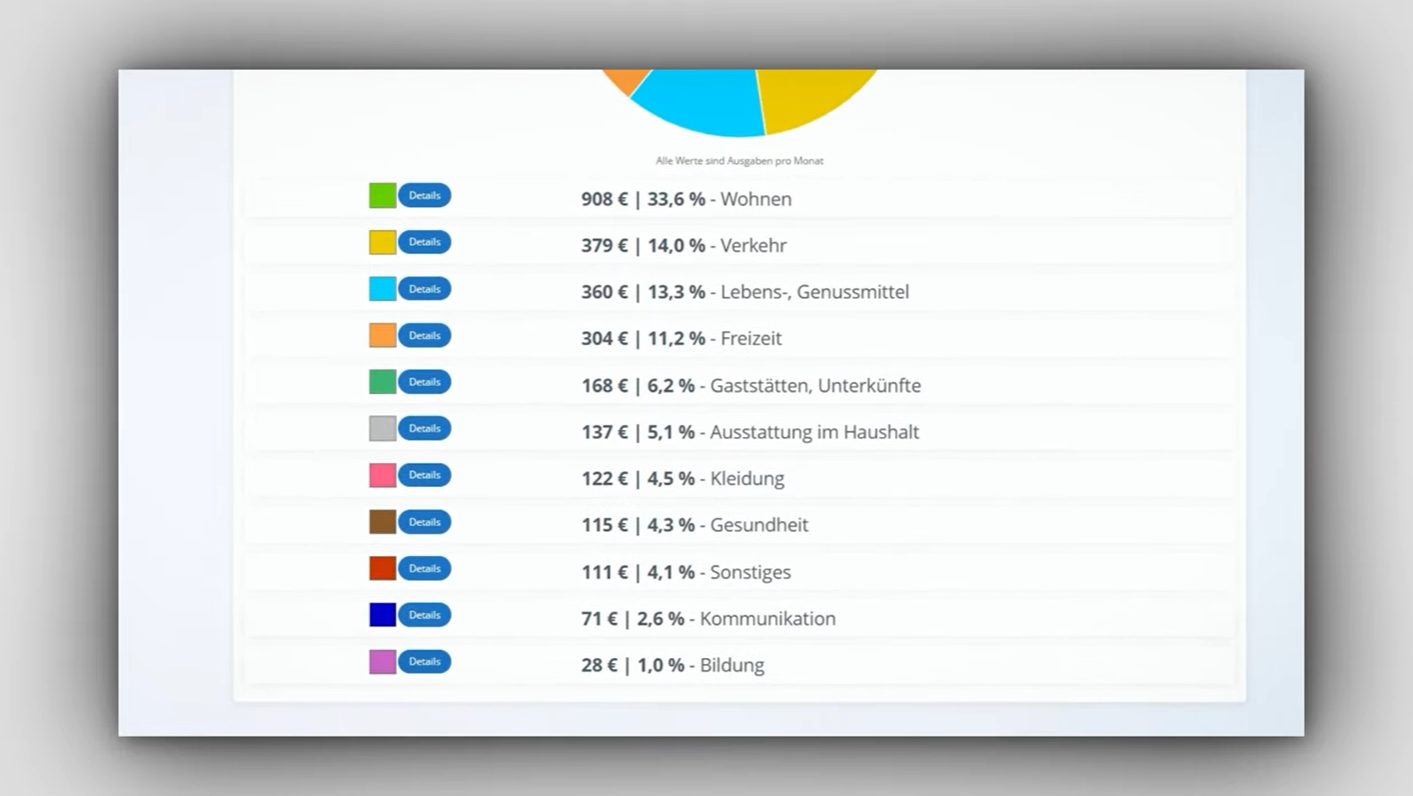 According to the Federal Statistical Office, expenses related to housing are the largest expenditure item for many households, usually coming to around one-third of the total budget.