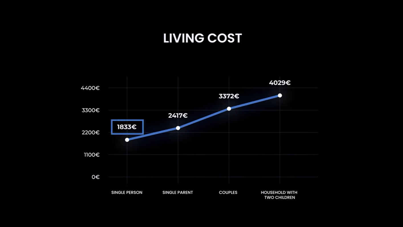 The latest available data from the Federal Statistical Office related to this is from the year 2022. And according to it, the average monthly living cost in Germany is around €2,704 per household.
