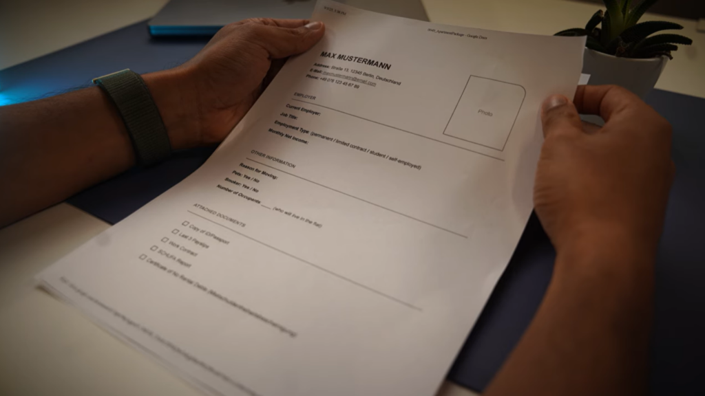 And remember at the end of the day, landlords in Germany care about one thing above everything else: will the rent be paid on time? That’s why proving your financial reliability is your strongest card. If you’re working, include your last three payslips. And of course, add the SCHUFA report, which is the German credit check showing you don’t have unpaid debts. You can order it online pretty easily. And if you can, get a certificate from your current landlord confirming you don’t owe any rent, called a Mietschuldenfreiheitsbescheinigung; include that too. Every single document that makes your case stronger.