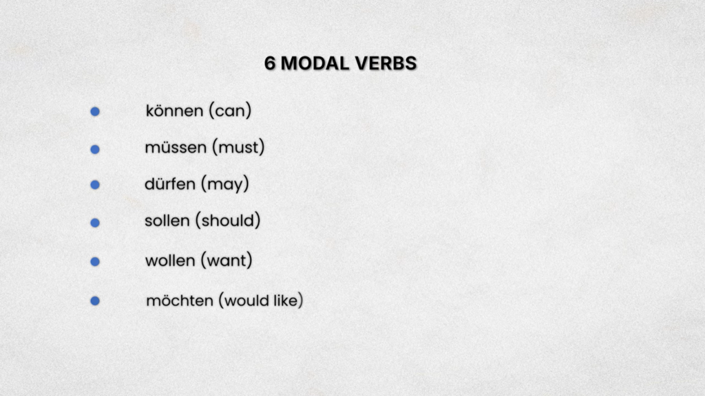 When it comes to German grammar, modal verbs are your friends. There are six: